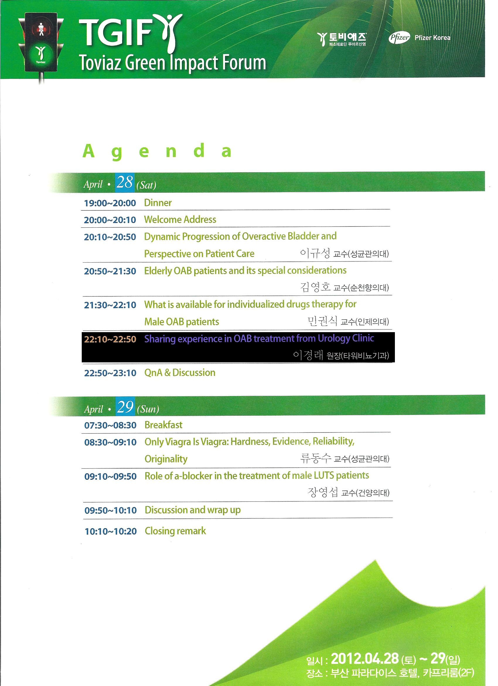 TGIF세미나에서 타워 여성비뇨기과 이경래 원장님께서 하부요로증상의 개선을위한 치료에 대한 경험을 발표하셨습니다.